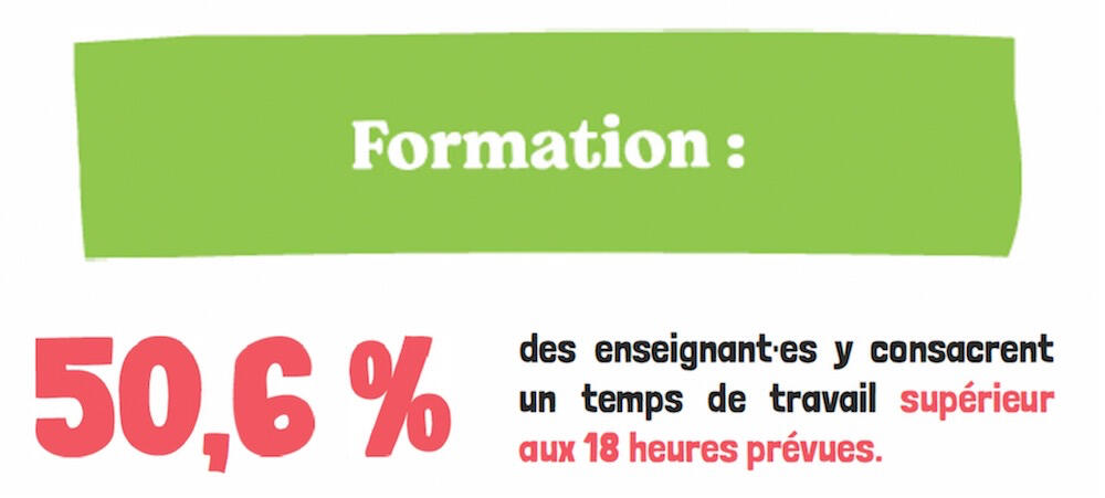 50,6% des personnels dépassent le cadre des 18 heures officielles de formation, sans compter les temps d’auto-formation qui ne sont jamais pris en compte.